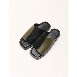 Platform sandals featuring *a dual-material upper made from genuine leather and calf hair*, complemented by decorative stitching and finished with an anti-slip rubber outsole.